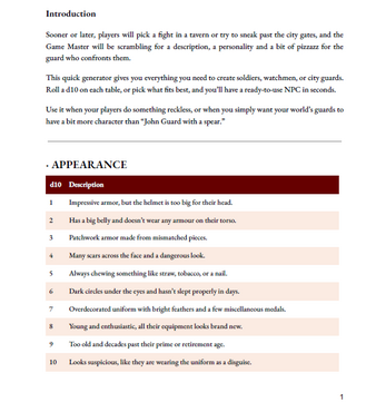 Guards & Soldiers: Quick NPC Generator for Fantasy RPGs